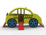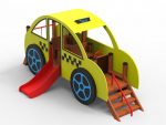 First Steps PlaygroundsCall a taxi, stop it and start your fun journey! This wooden playground element, which visually resembles a taxi, has steering and seats and slides.